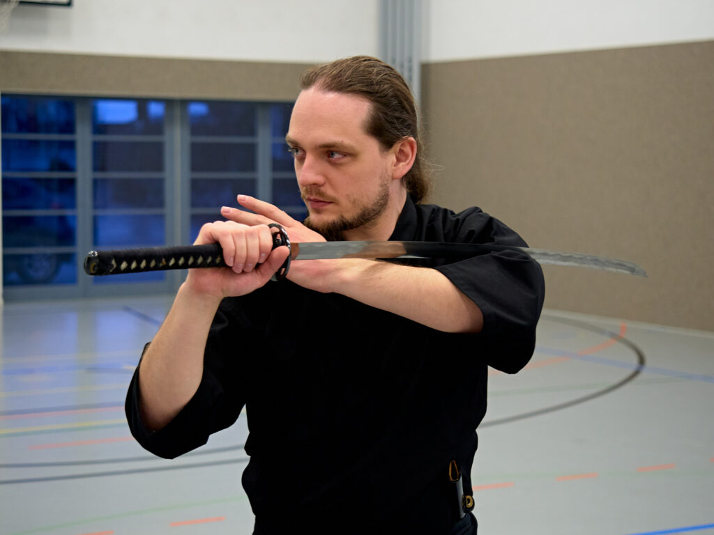 Zum Abschluss des dynamischen Trainingsteils gehört das Leichtkontakt-Sparring mit Shinai (Bambusschwert) und leichter Rüstung oder das Vollkontakt-Sparring mit Stahlwaffen und kompletter Schutzausrüstung, wie man es aus dem HEMA kennt.